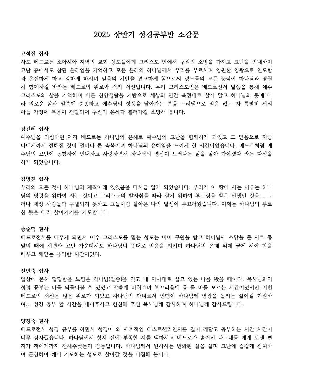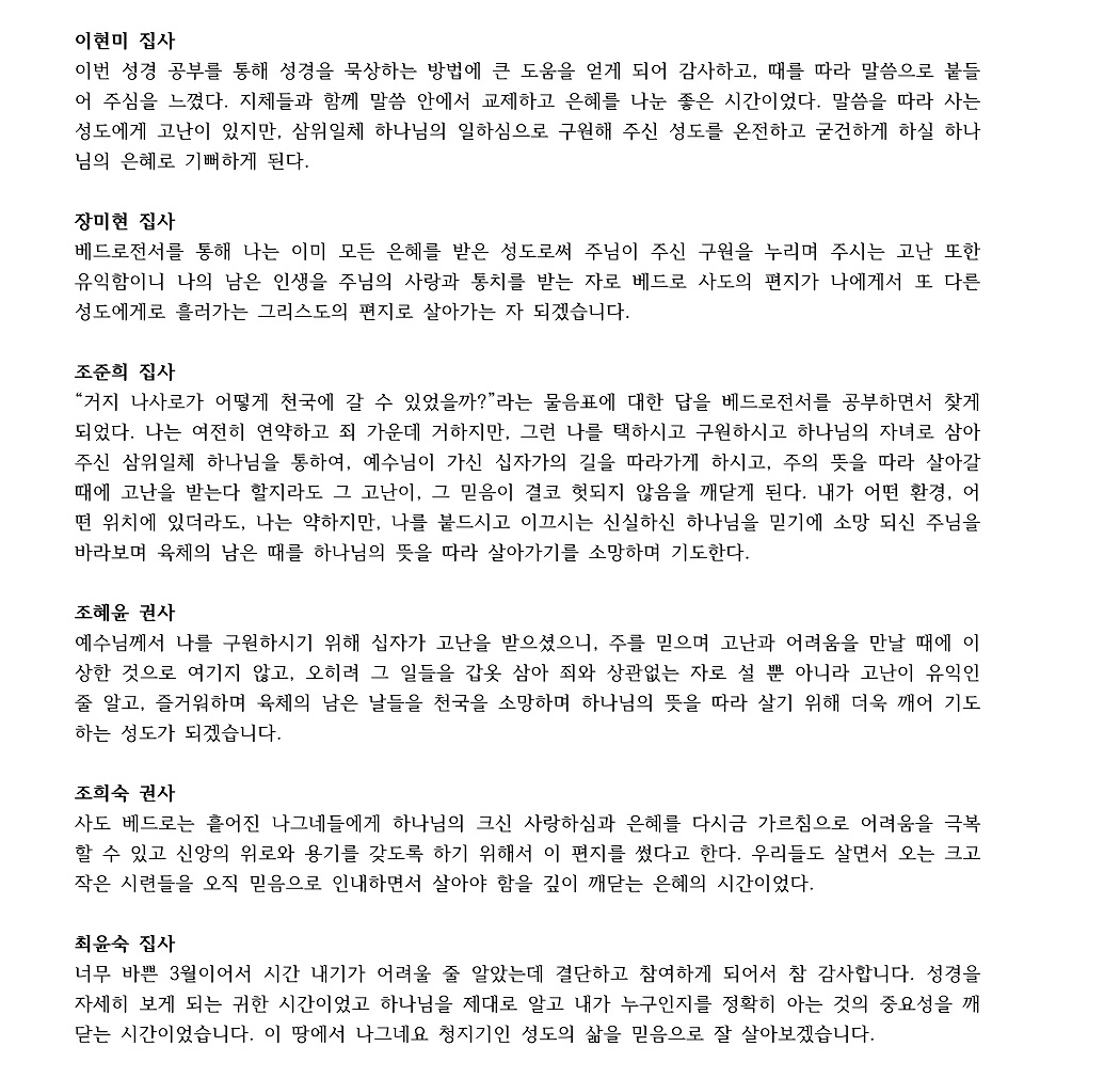 2025년 상반기 성경공부반 소감문